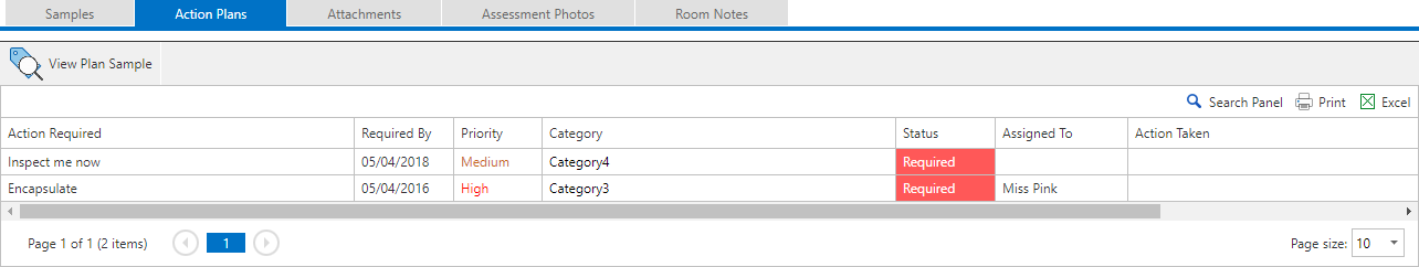 View the selected action plans sample. This will open the View Asbestos Sample screen showing the sample that contains the selected action plan.