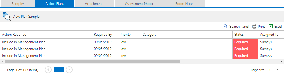 View the selected action plans archived sample. This will open the View Archive Asbestos Sample screen showing the archived sample that contains the selected action plan.