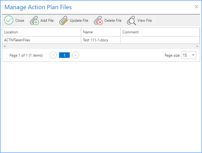 View the selected action plan file. This will open a PDF file in a new browser window. An Excel or Word document can be opened and will start Excel or Word (this may take a short while to complete) or saved for later opening.