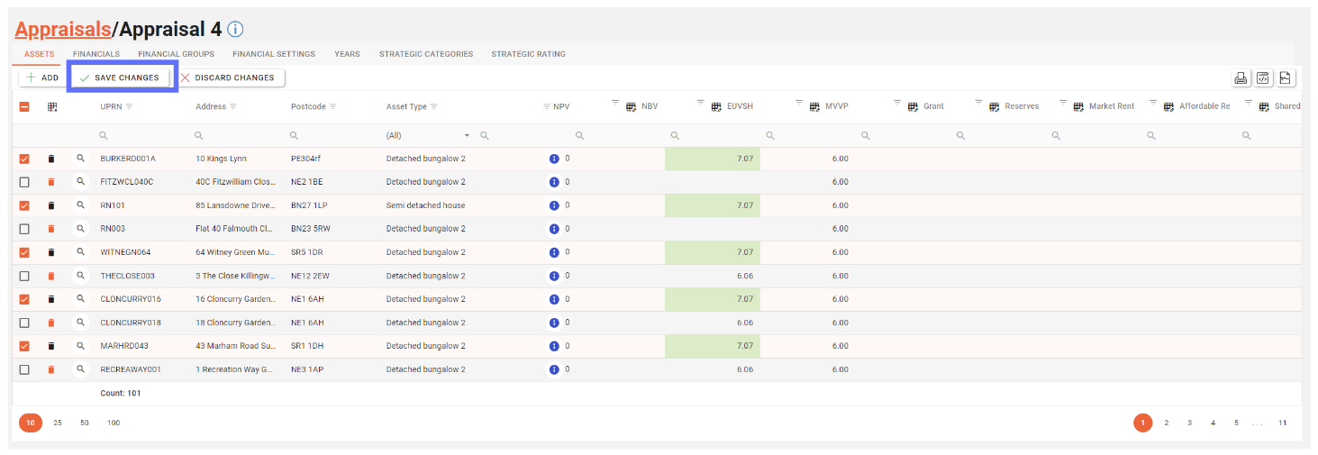 Appraisal Asset values can be bulk edited by first selecting the rows you want to bulk edit by ticking the checkboxes on the left-hand side of the grid.