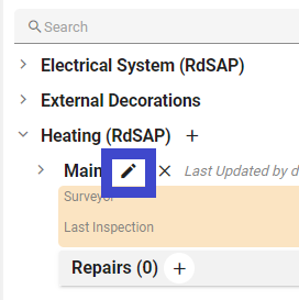 Repairs will show under the relevant component with a total in brackets. Clicking on the bold “Repairs” label will show/hide the repairs assigned to the component.