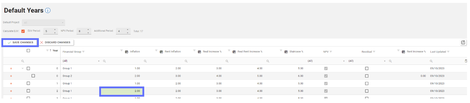 In this example changing the NPV Period from 8 to 10 will result in an additional two NPV Years being added to list of years.