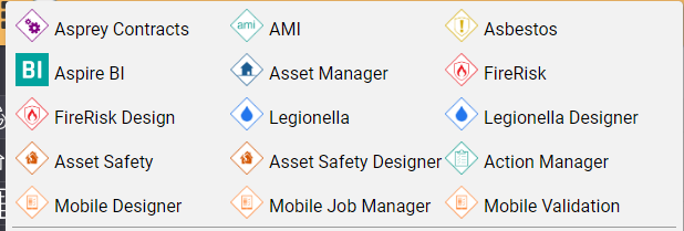The switchboard navigation functionality within Asprey Assets allows users to navigate to other software provided by Asprey.