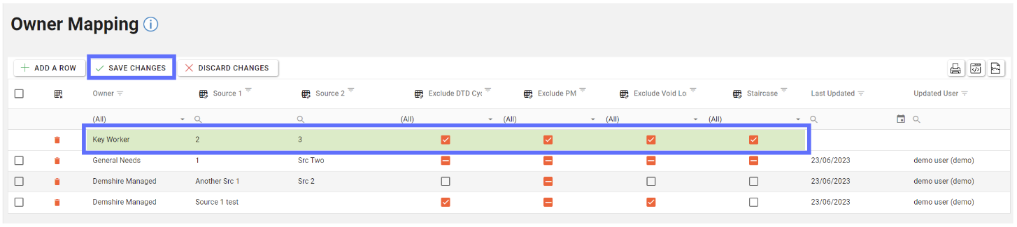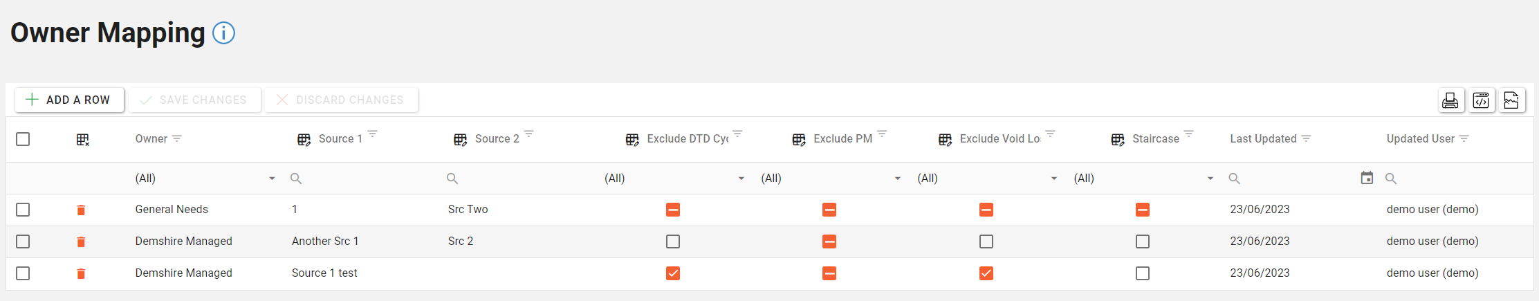 To create a Owner Mapping click on the “Add A Row” button in the toolbar at the top of the screen.