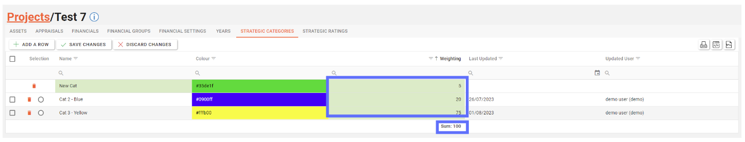 However because a Project Strategic Category row has been deleted, the weightings now don’t add up to 100.