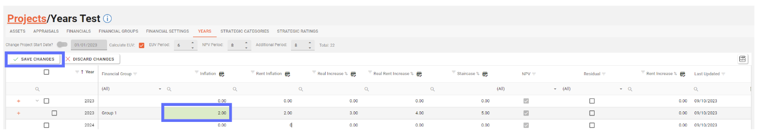 In this example changing the NPV Period from 8 to 10 will result in an additional two NPV Years being added to list of years.