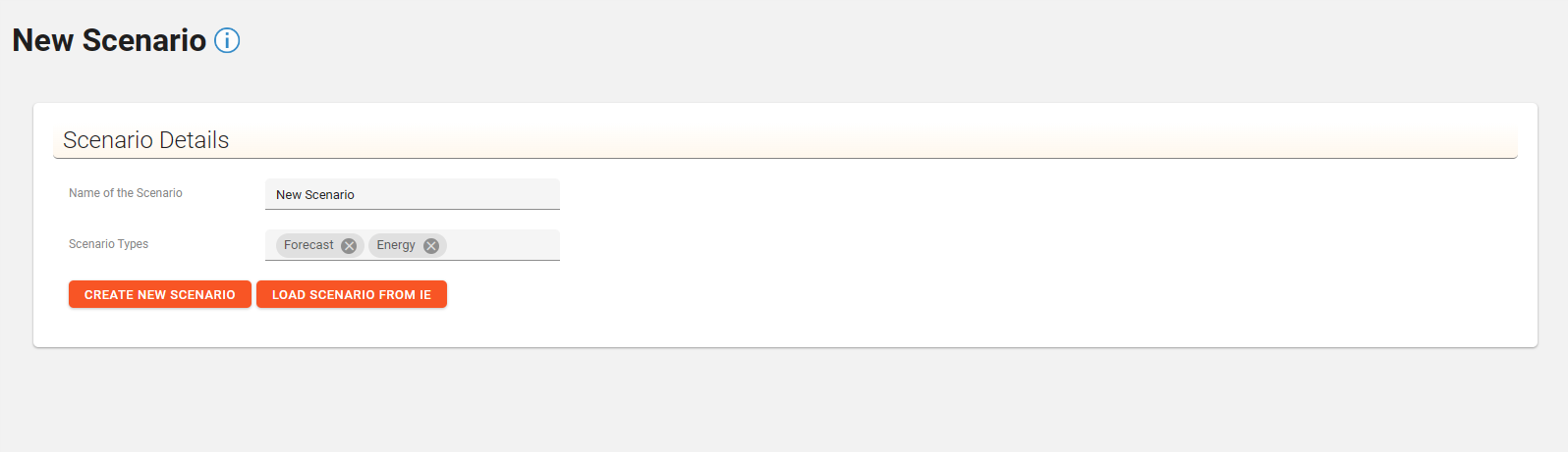 Then click “Create new scenario” button. Alternatively, if a Scenario has already been created in Intelligent Energy, these can be loaded directly into Asprey assets by clicking the “Load Scenario from IE” button.