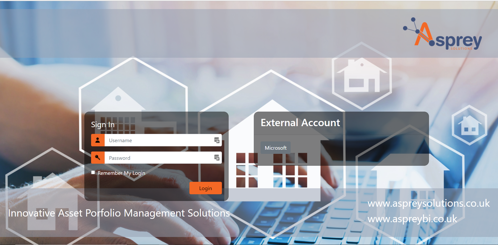 Open up a web browser and select the web address (URL) where Asprey Assets has been installed (contact your internal administrator if you’re unsure). Once started, the login screen will be displayed with the username and password required.