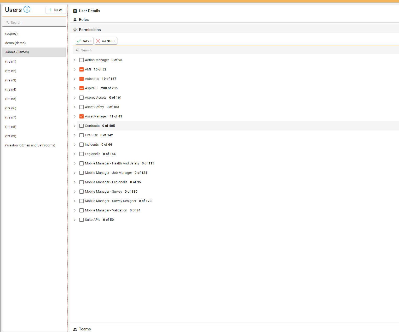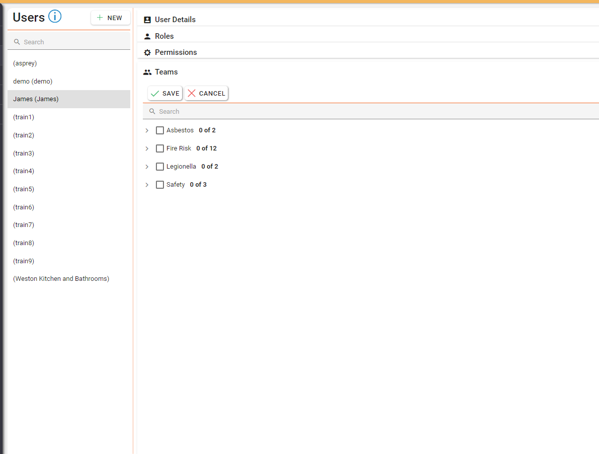 To assign different Teams to a user, select the Teams section of the Users screen, and click the required Teams from the options available. Once the new permissions have been selected, click the “save” button.