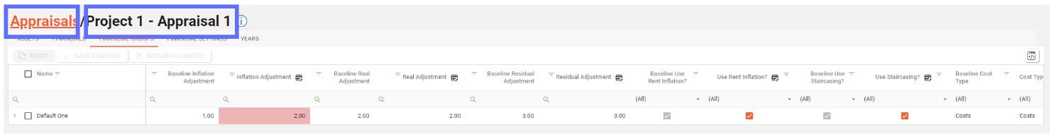 The Appraisal Drilldown screen allows a user to maintain the Assets and a plethora of financial settings at a Appraisal level.