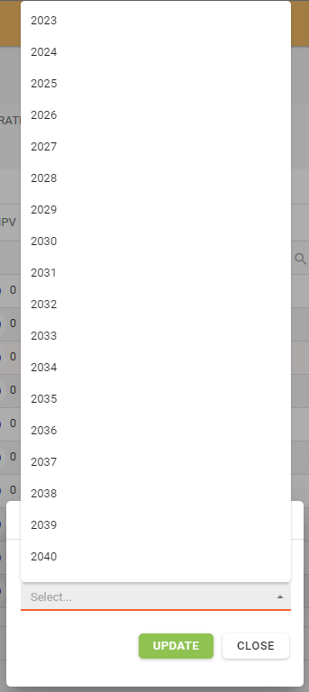 Choose the Year from the list that you want to apply to all of the previously selected Asset Cost rows and click on the “Update” button.