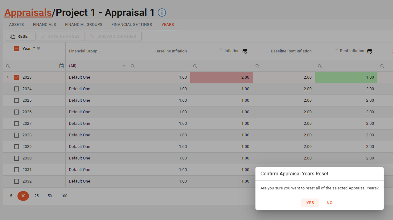 If you click “Yes” the selected years (if they have overridden values) will be reset.