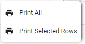 ![]() ![]() | Print Data | This button allows the user to print the data in the current screen. The options are to print all the data in the current grid or to only print the selected rows. |