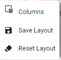 ![]() ![]() | Layout | This button allows the user to specify the layout of the columns in the grid. The options are to select the columns, save the current layout and to reset the layout to the default configuration. |