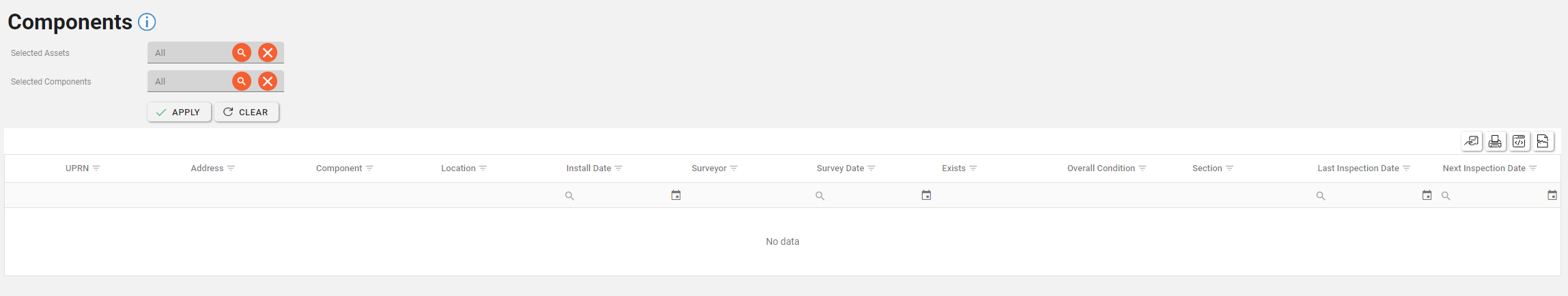 The Components list allows you to see all components held within Asprey Assets.