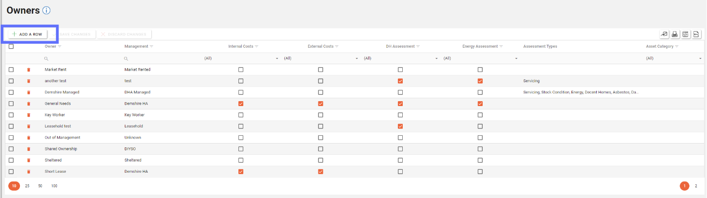 To add a new Owner, click the “Add a Row” button located at the top left-hand side of the Owner screen.