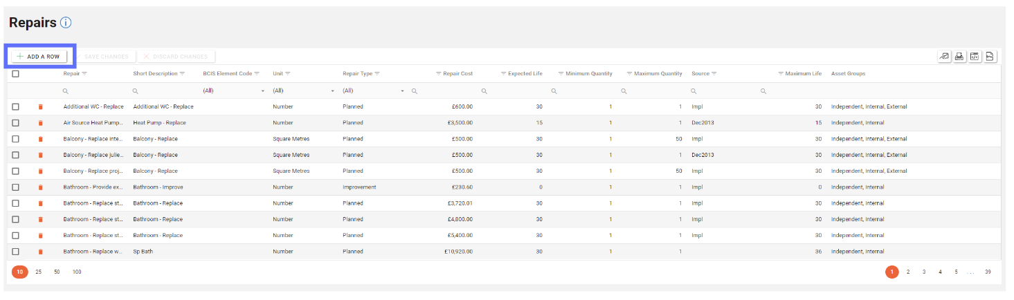 To add a new Repair, click the “Add a Row” button located at the top left-hand side of the Repair page.