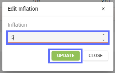 In this example we’re updating all of the selected rows to have an Inflation value of 5. Click on the “Update” button to update the grid with the new Inflation value.