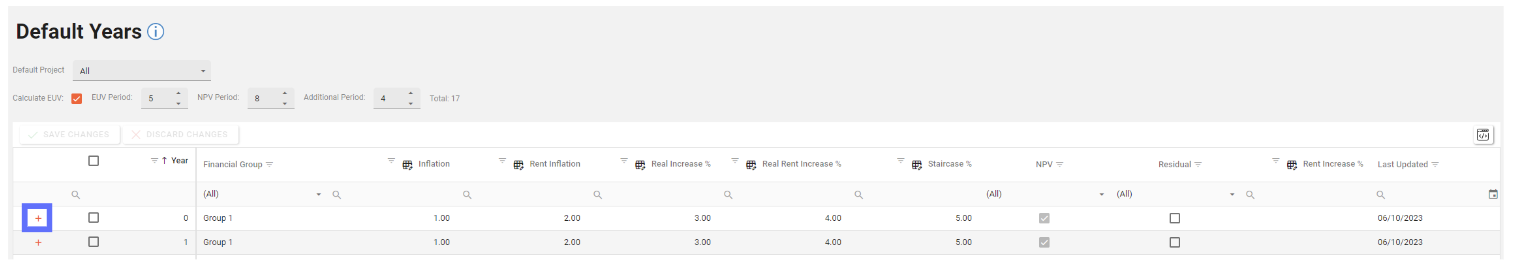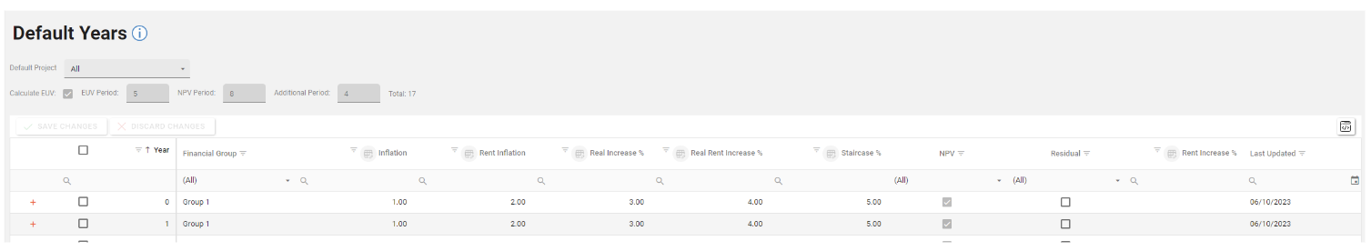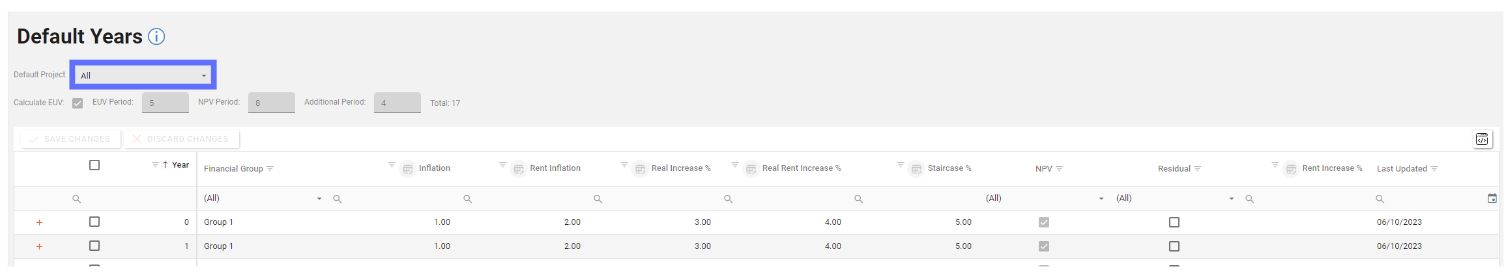 Default Years are dependant on Default Projects & Default Financial Groups so these should be set up first in the Asprey Assets Appraisal Module before trying to create Default Years.