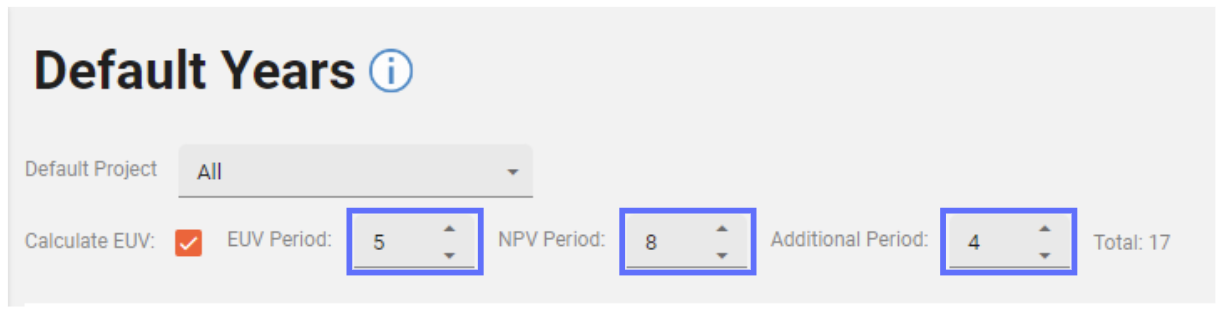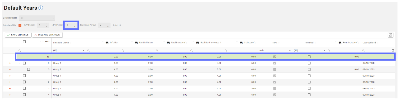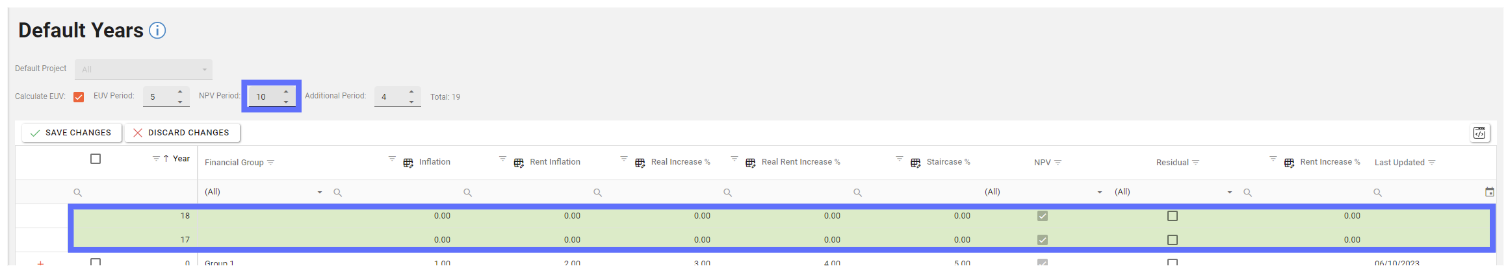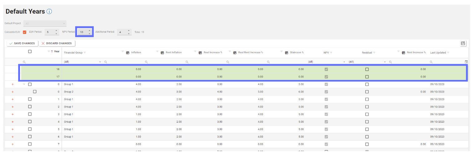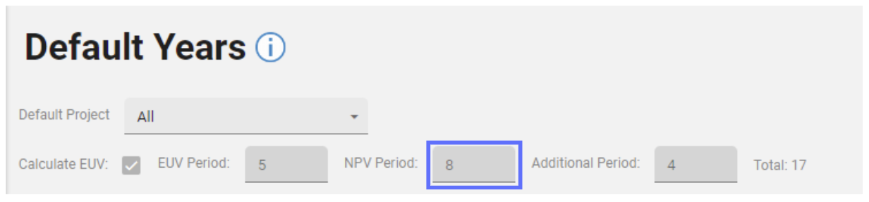 In this example changing the NPV Period from 8 to 10 will result in an additional two NPV Years being added to list of years.
