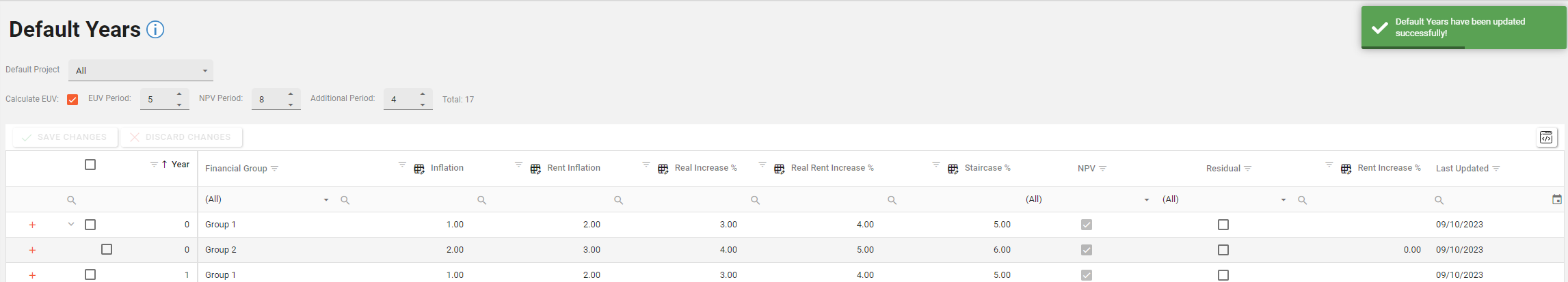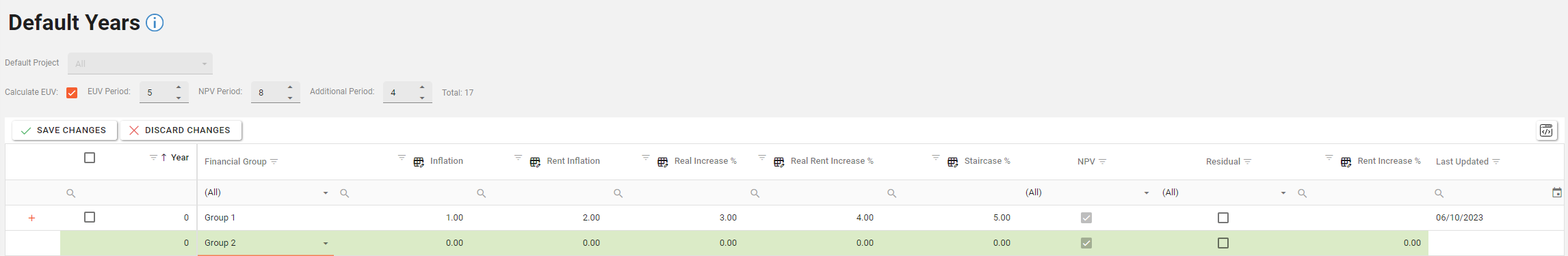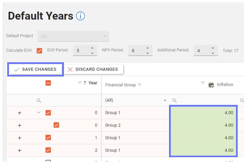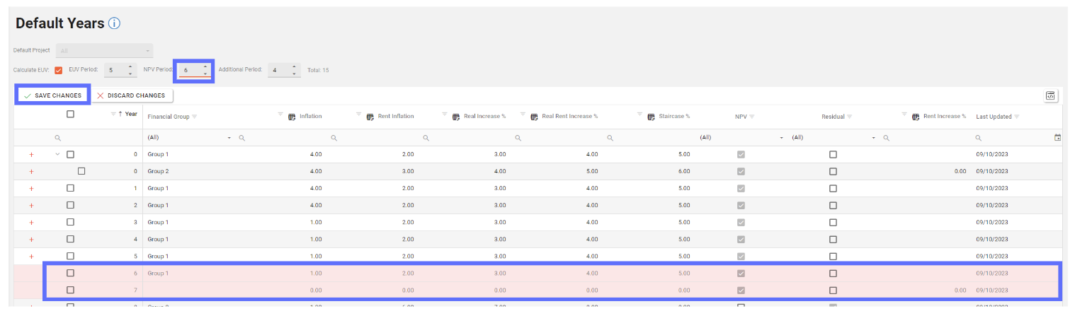 For example reducing the NPV Period from 8 to 6 will mark the last two NPV years for deletion. (see below)