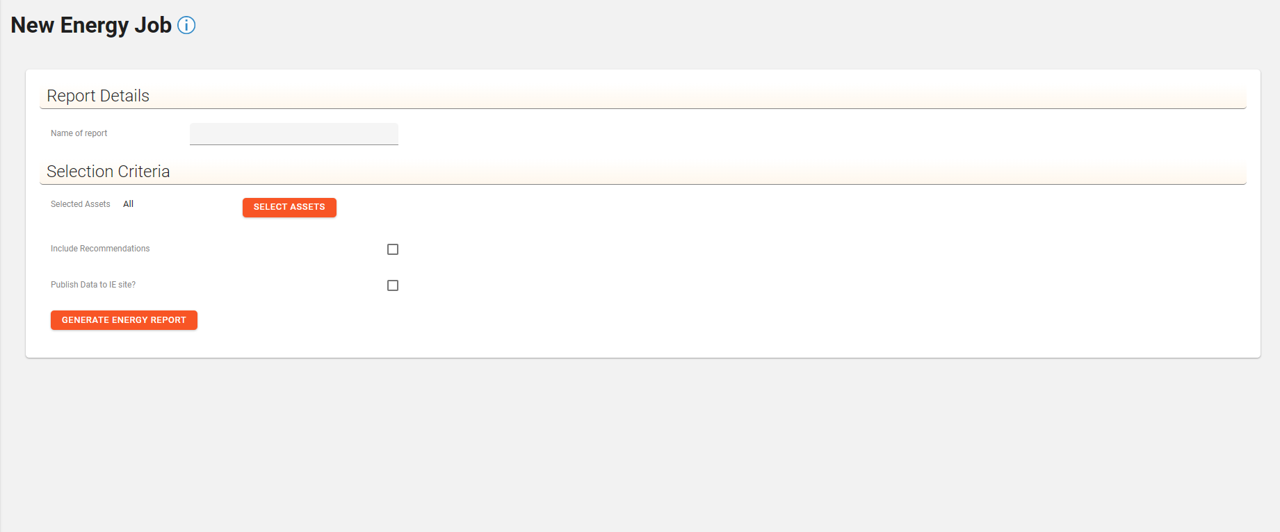 When in the creation screen, name the Energy report and select the assets (using the asset explorer) and the criteria under which the Energy job is to be performed.