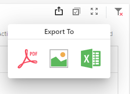 To export any of the visuals from the dashboards, hover over the visual you wish to export and the following icons will appear if exporting has been enabled: