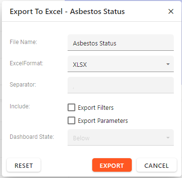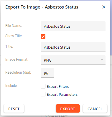 1 | File Name | Define the file name of the export - this will default to the name of the visual or dashboard you exported but can be edited here before export. |