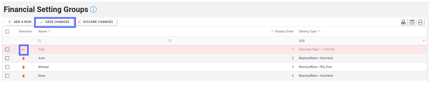 Unsaved changes to the grid can be undone by clicking on the “Discard Changes” button.