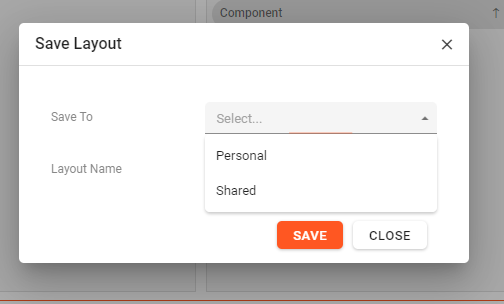 The dialogue box will appear. Custom layouts can be saved to your personal space (only accessed by you) or to a shared space (accessed by all with permissions to this area). Provide a name for the layout and click “Save”. This layout will be available from the dropdown as shown above.