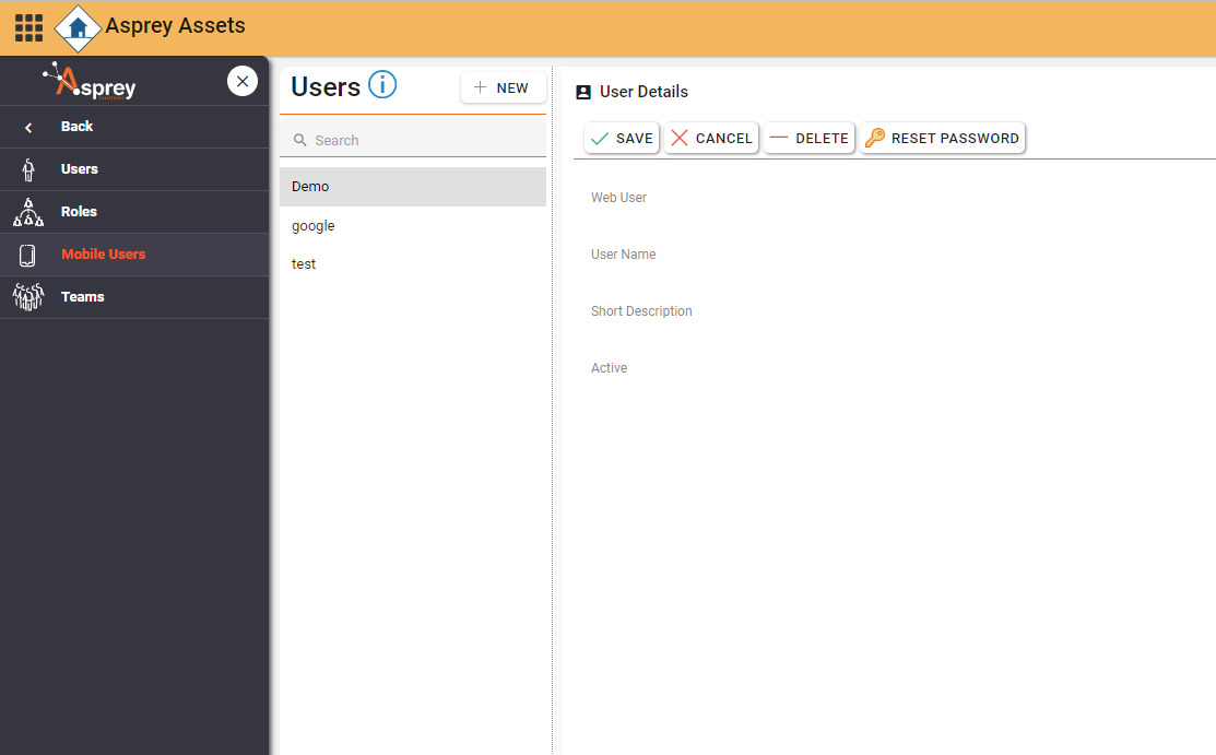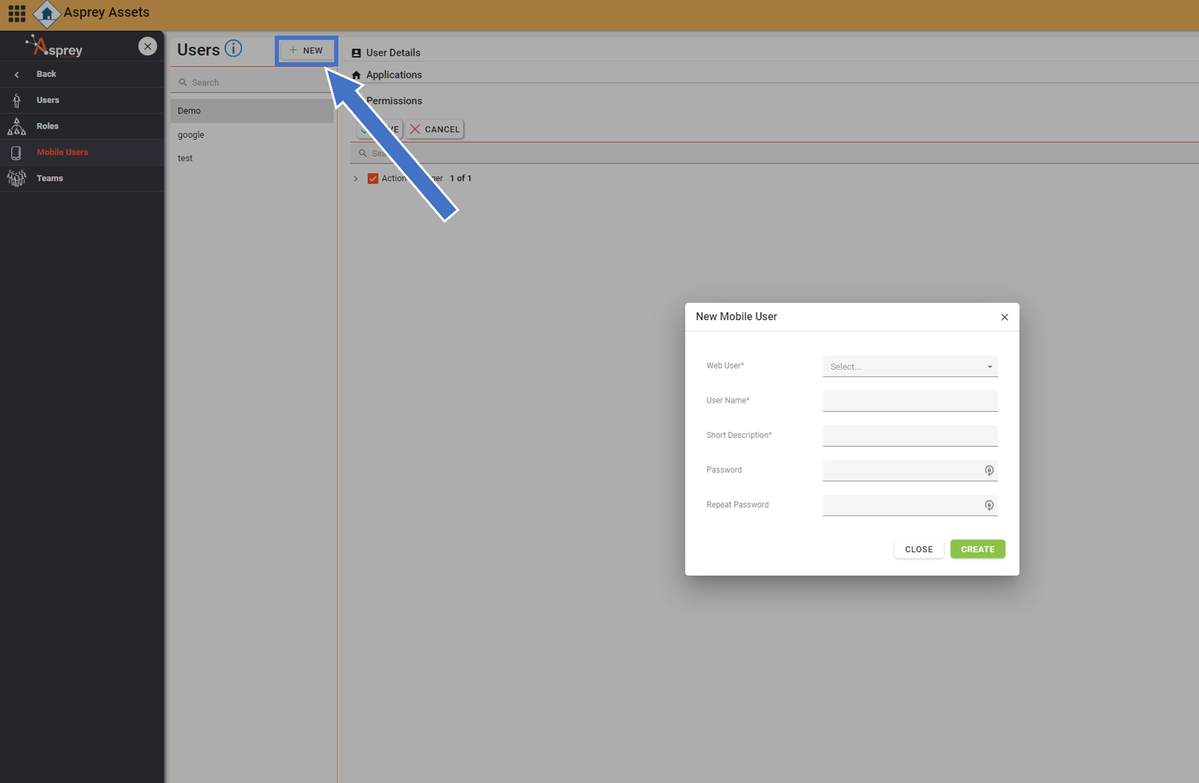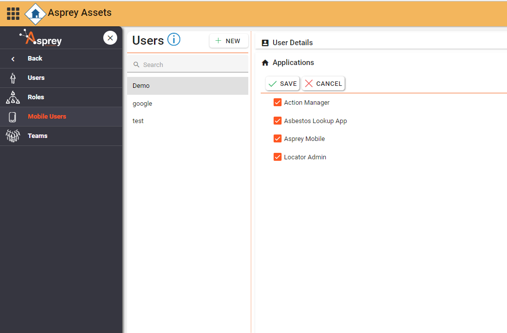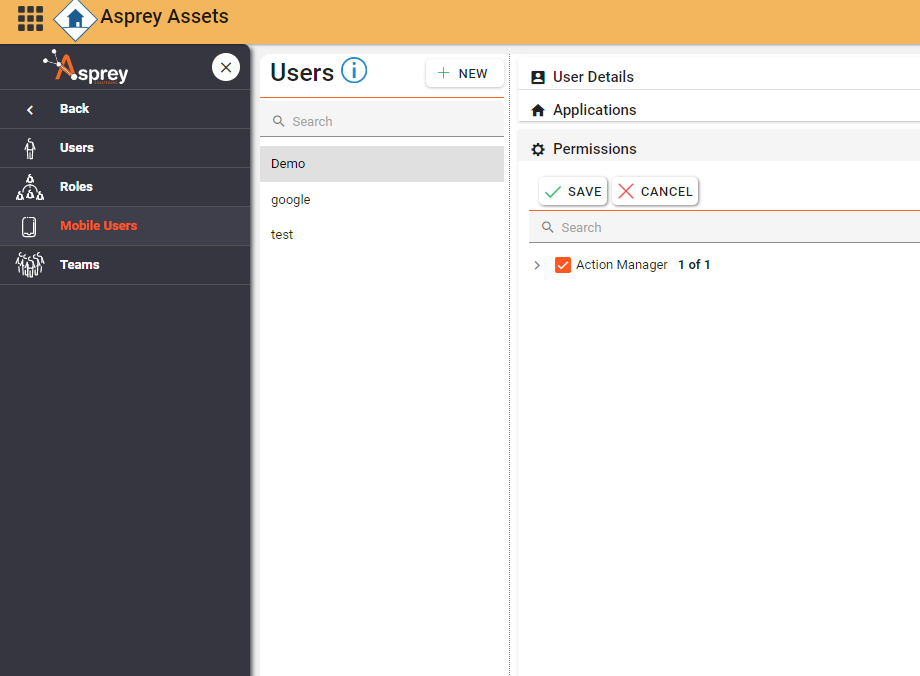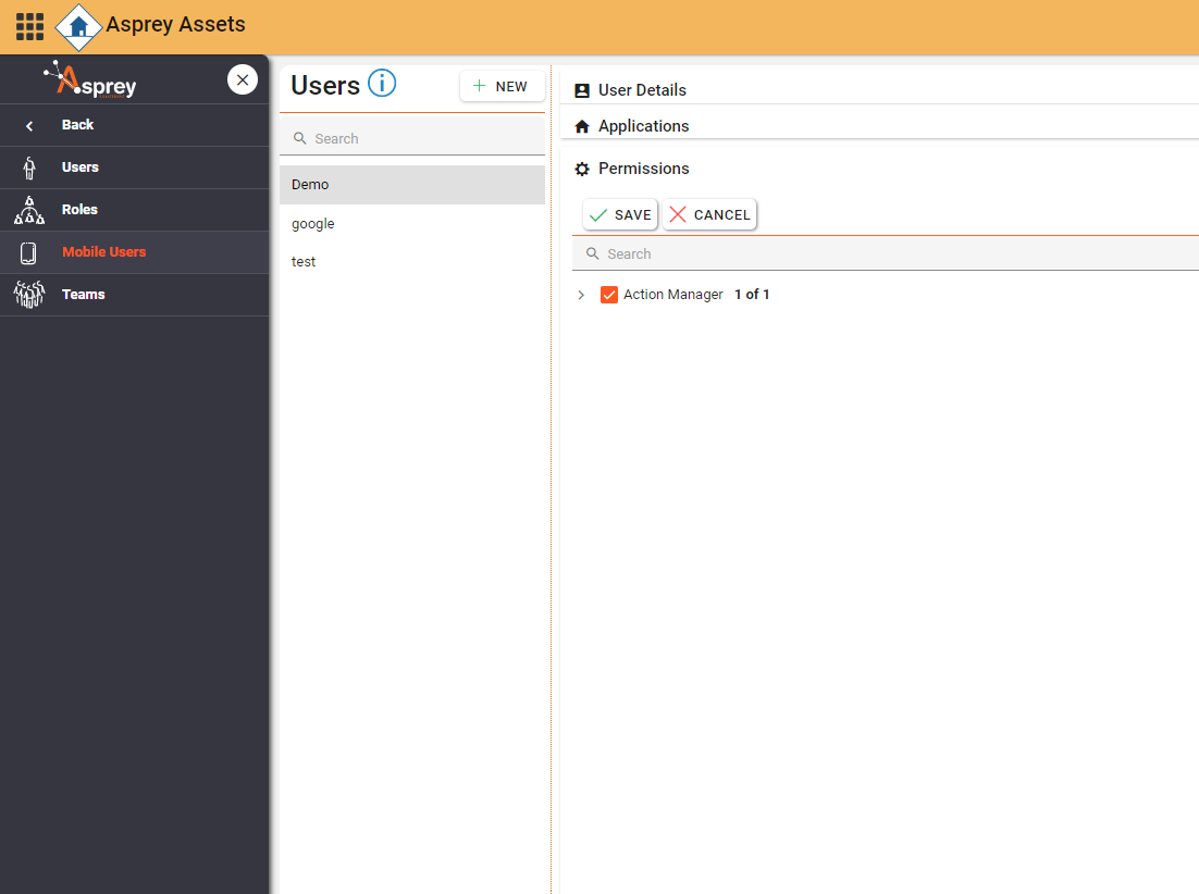 Use the Mobile User section to create, edit and delete mobile users. Here you can also assign which applications they belong to and the permissions associated with them.