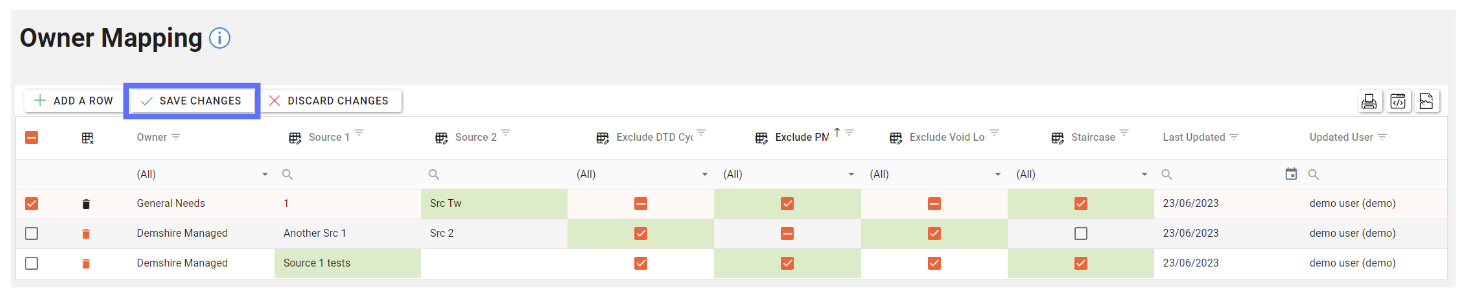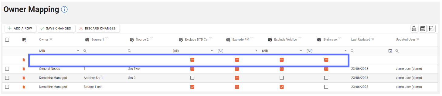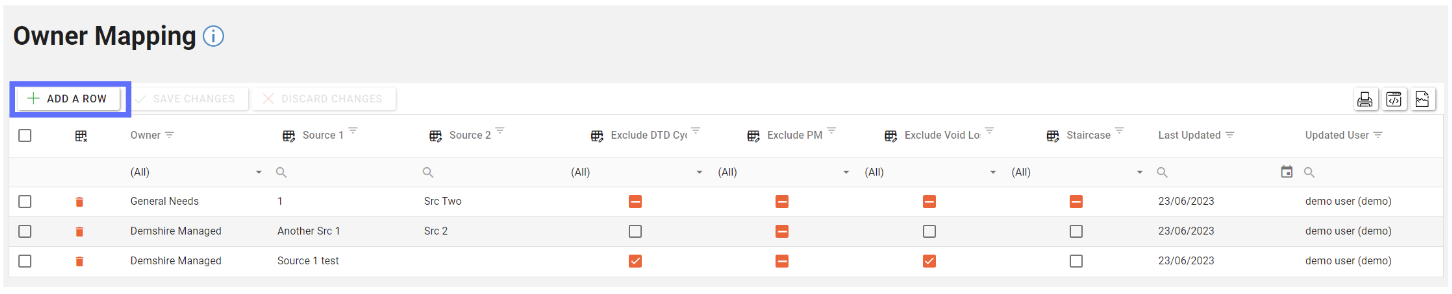 To create a Owner Mapping click on the “Add A Row” button in the toolbar at the top of the screen.