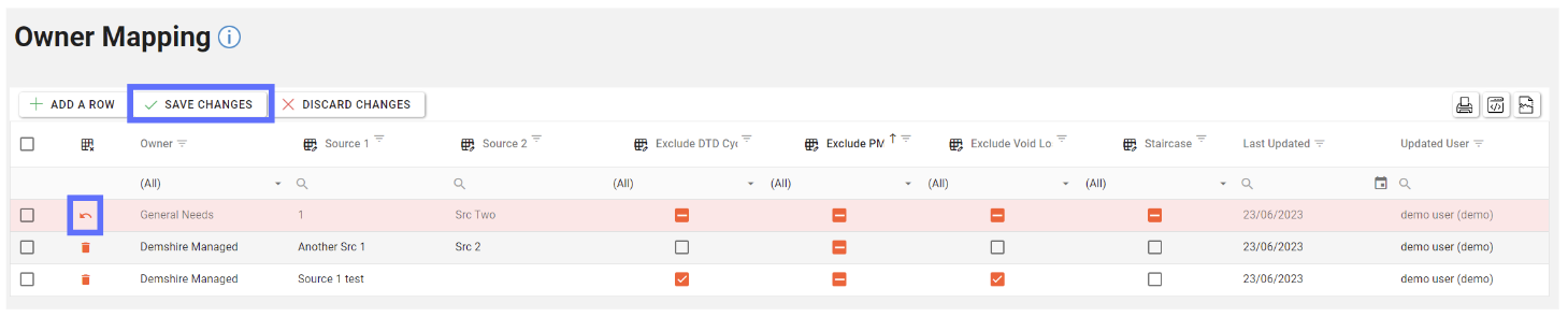 Unsaved changes to the grid can be undone by clicking on the “Discard Changes” button.